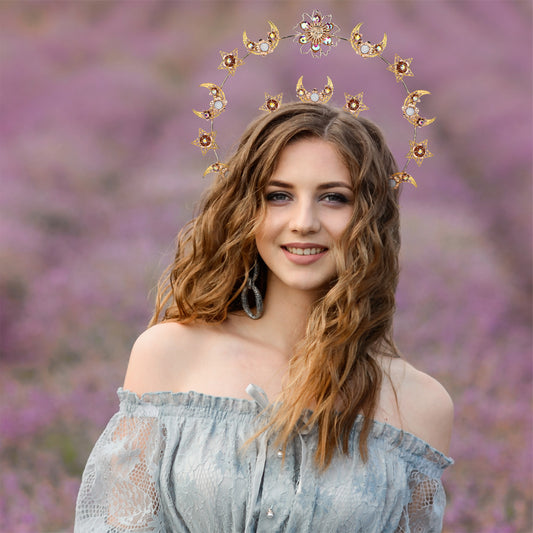 Triple Goddess Halo Crown - Moon Headpiece Witch Headband