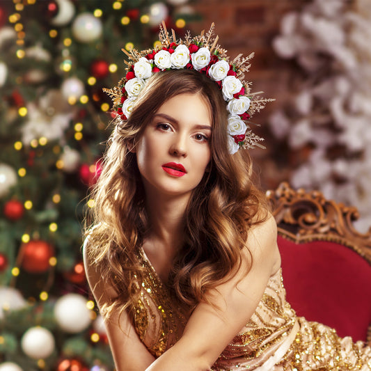 Christmas Flower Halo Crown - Headmade Rose Floral Sunburst Headband