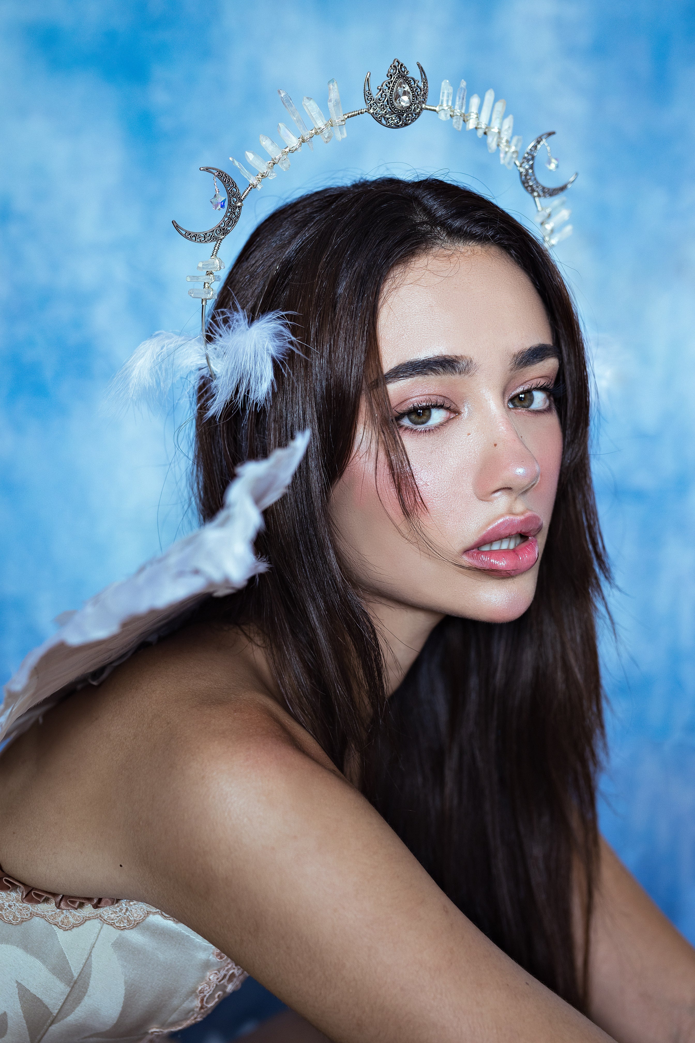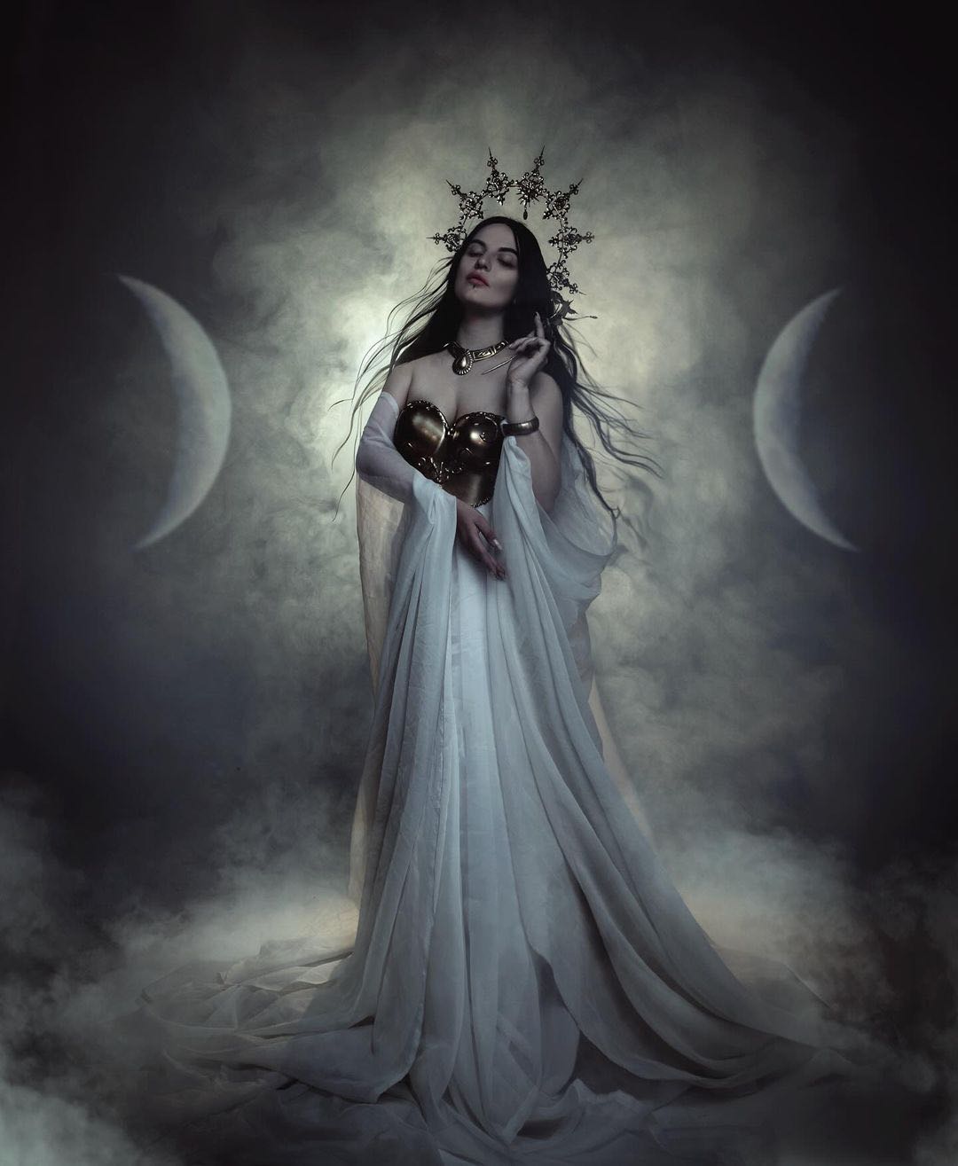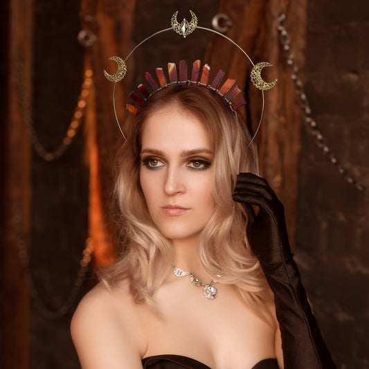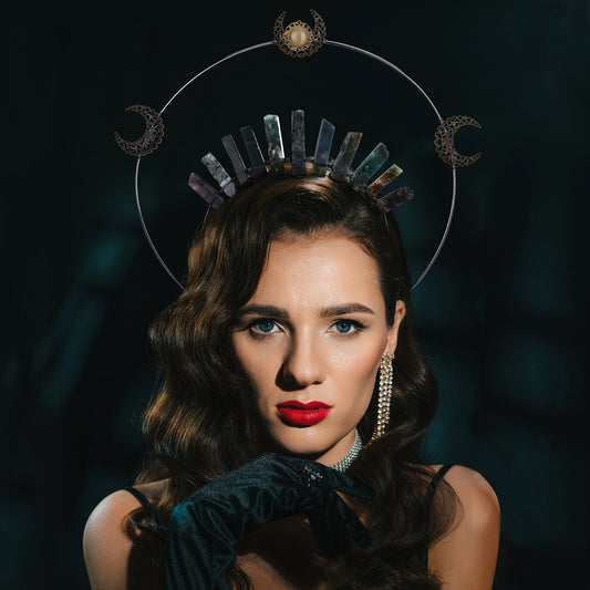 Triple Goddess Halo Crown - Moon Headpiece Witch Headband