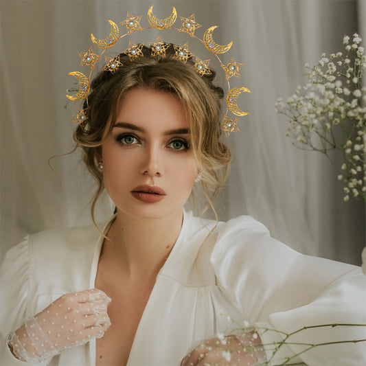 Gold Moon Halo Crown - Crystal Headband