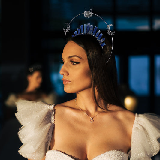 Silver Moon Halo Crown - Crystal Tiara