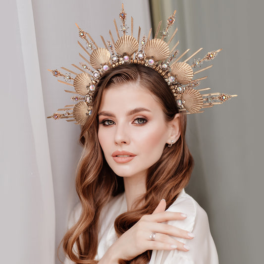 Shell Halo Crown Headpiece Gold Spiked Headband