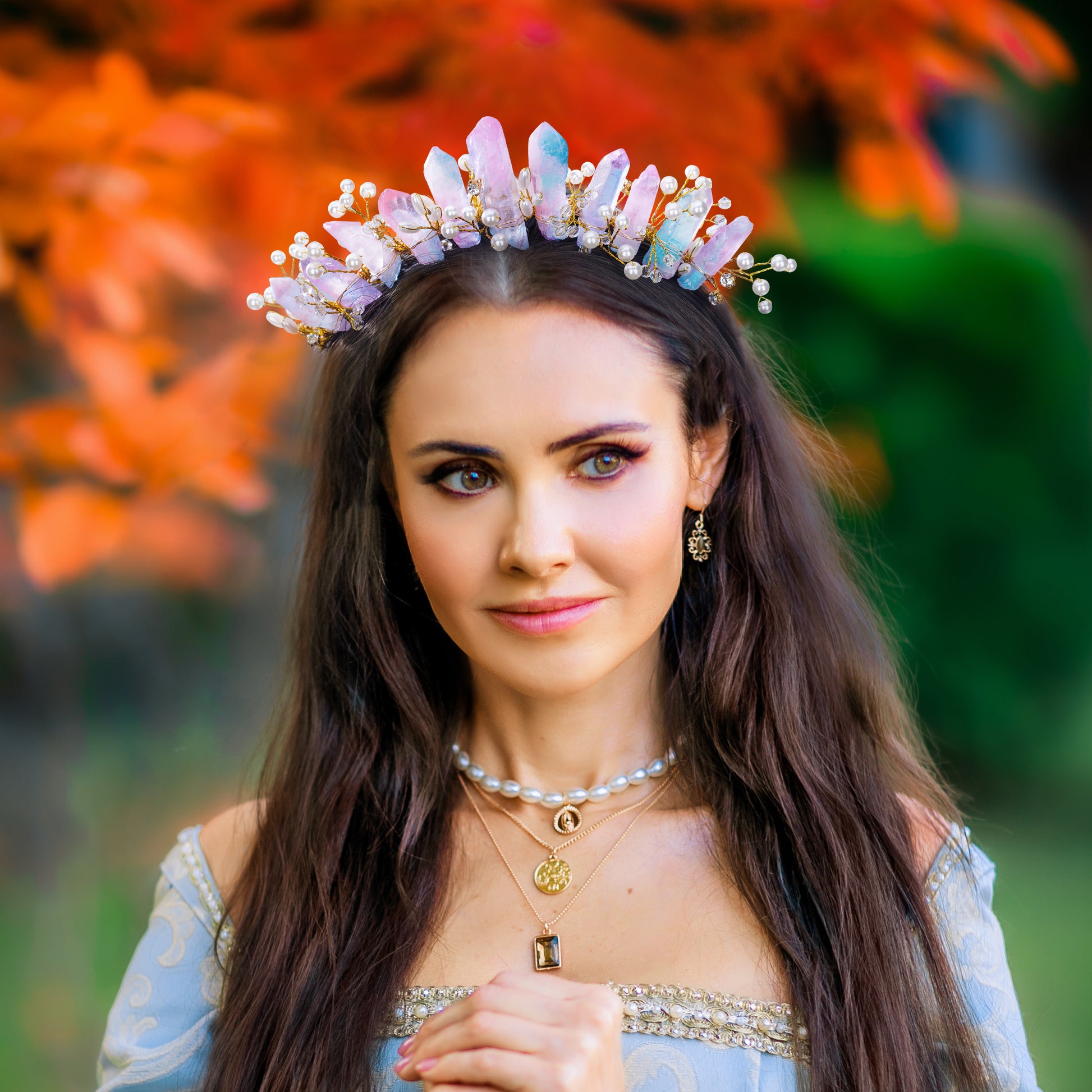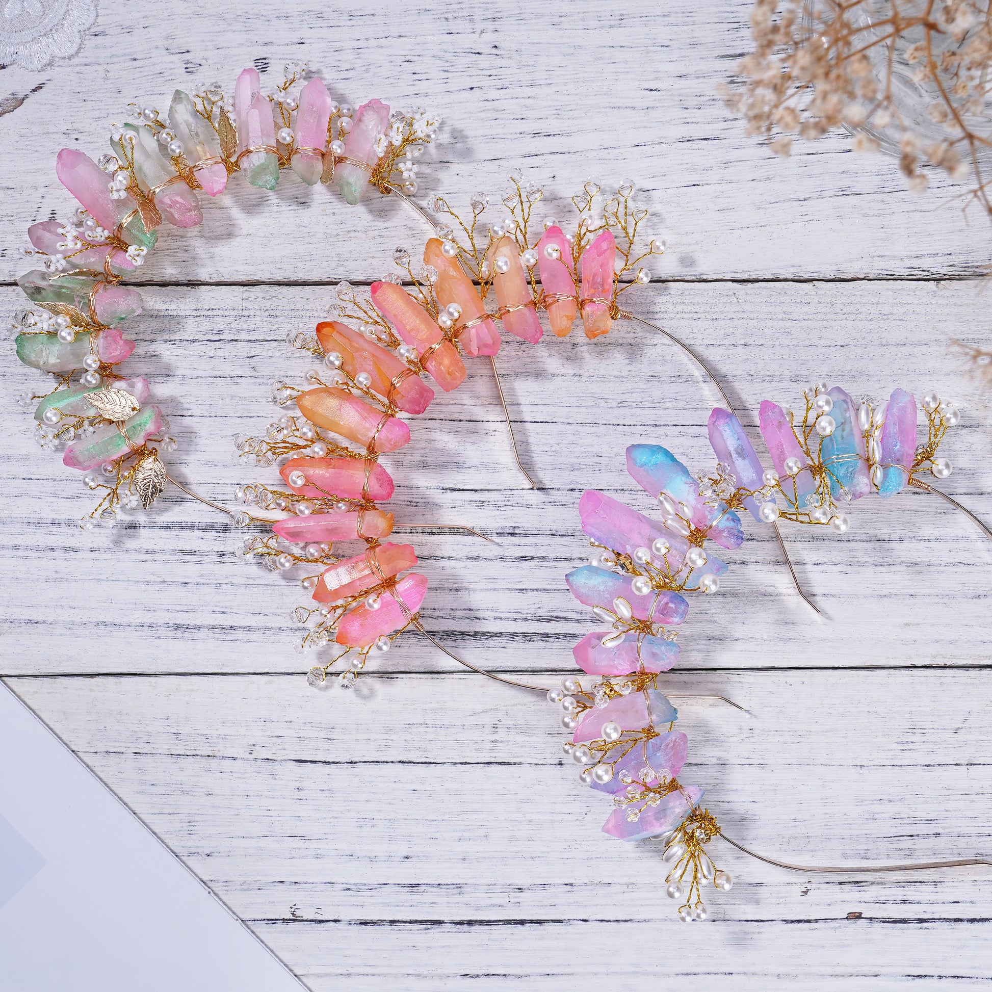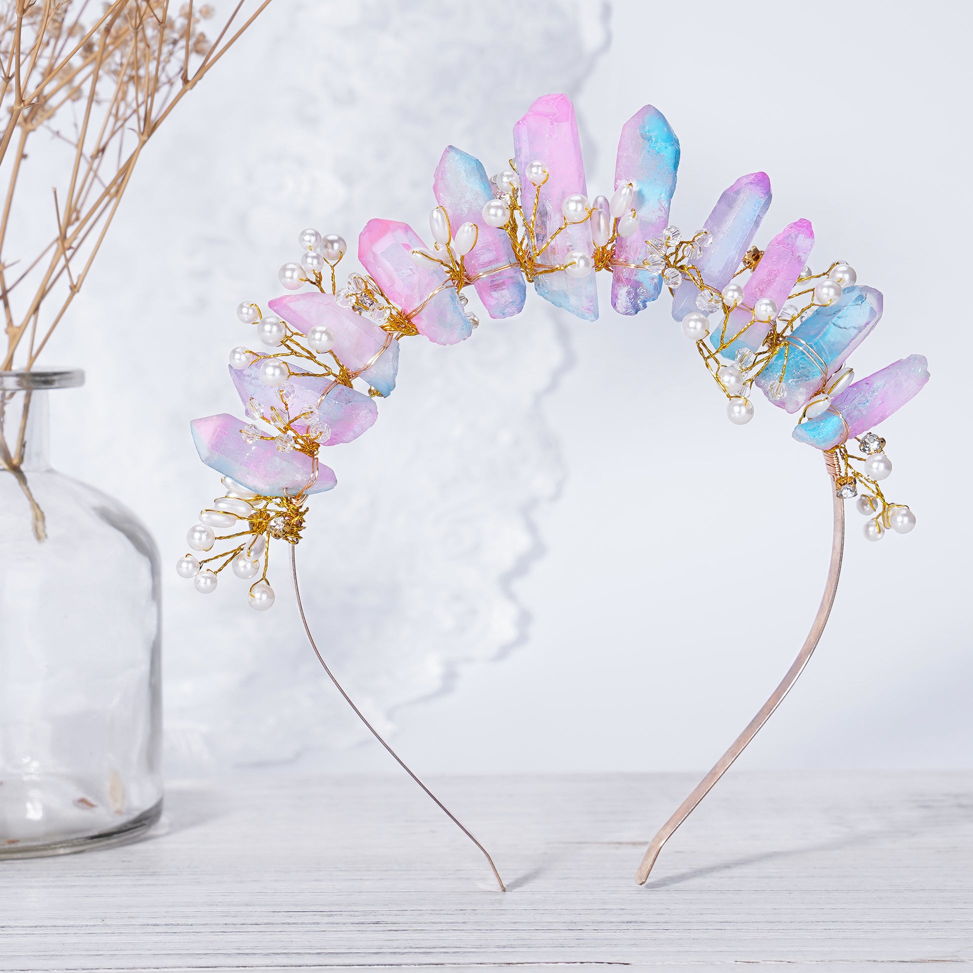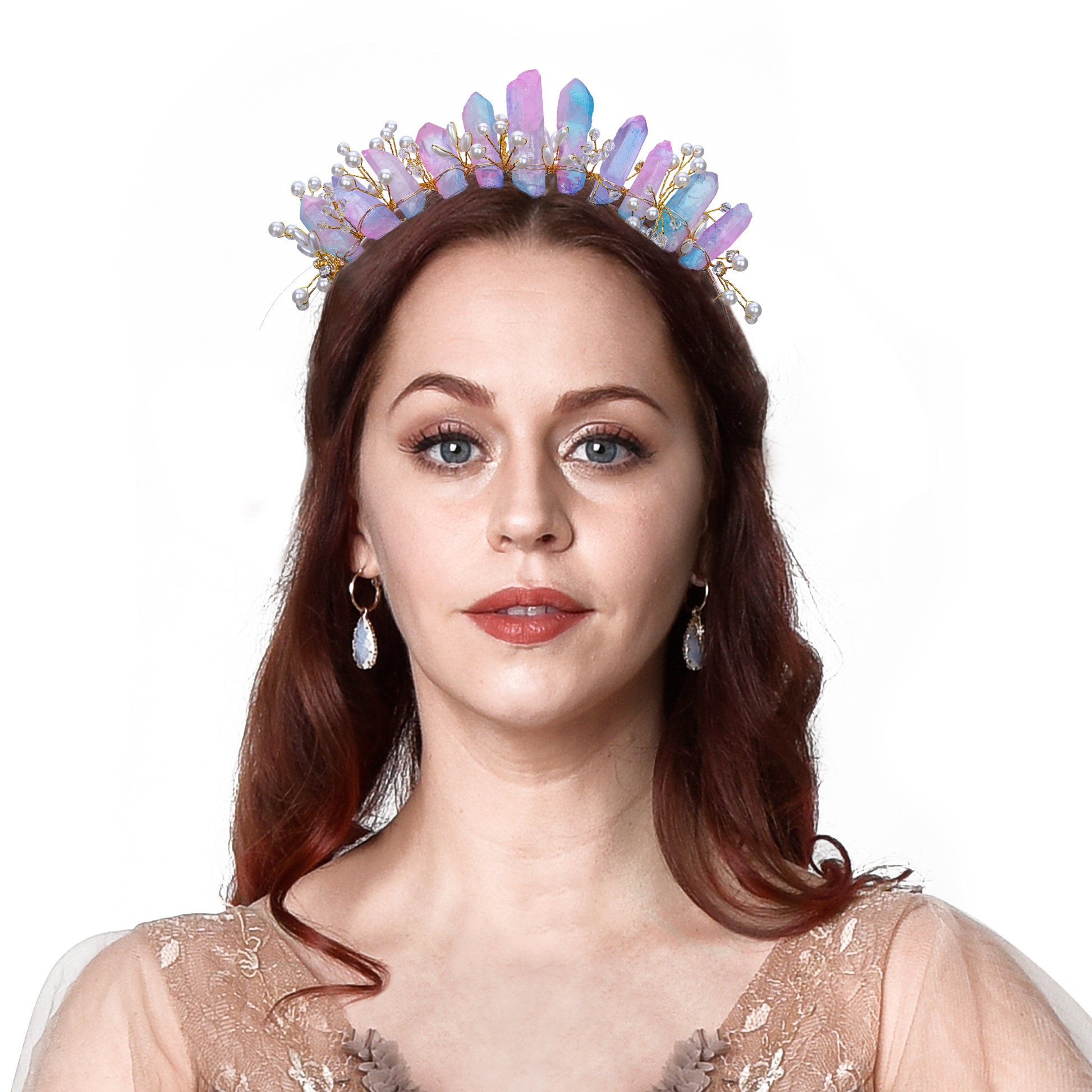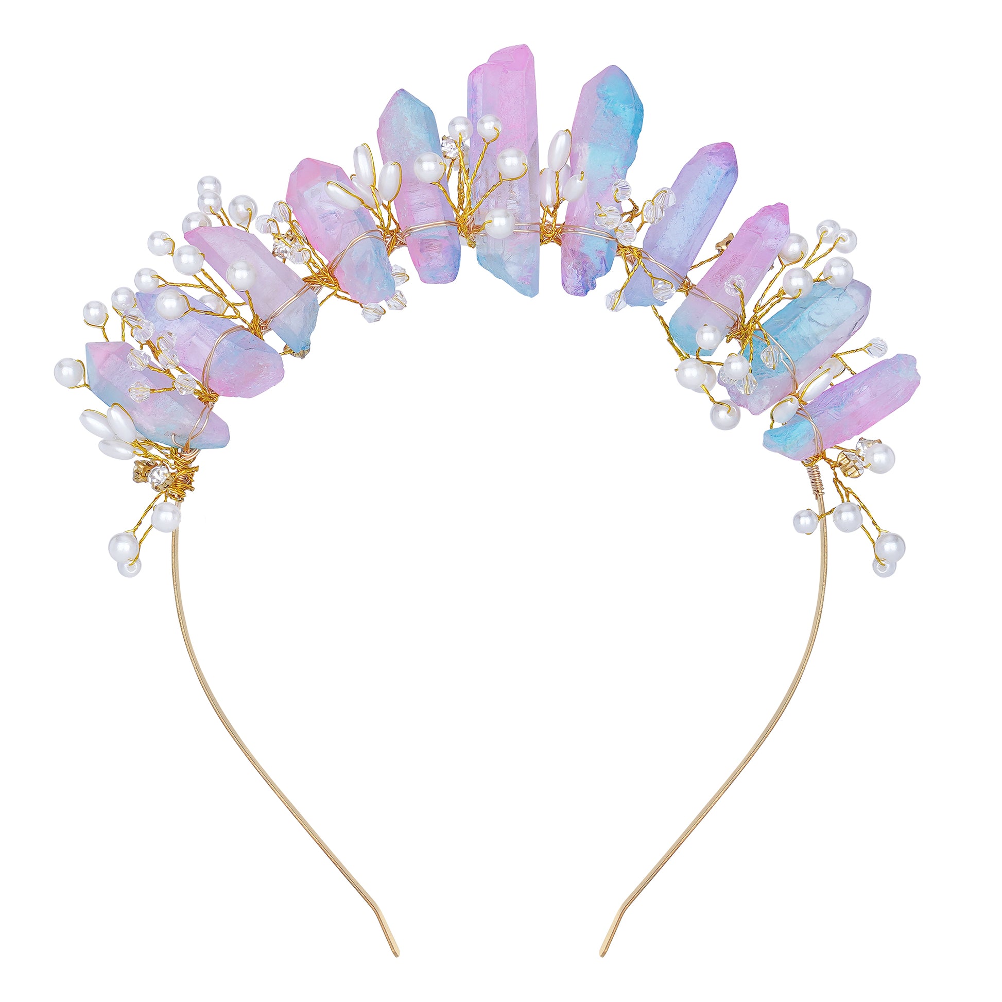 COSUCOS Quartz Crystal Crown Headpiece - Goddess Mermaid Headband Fairy Crown