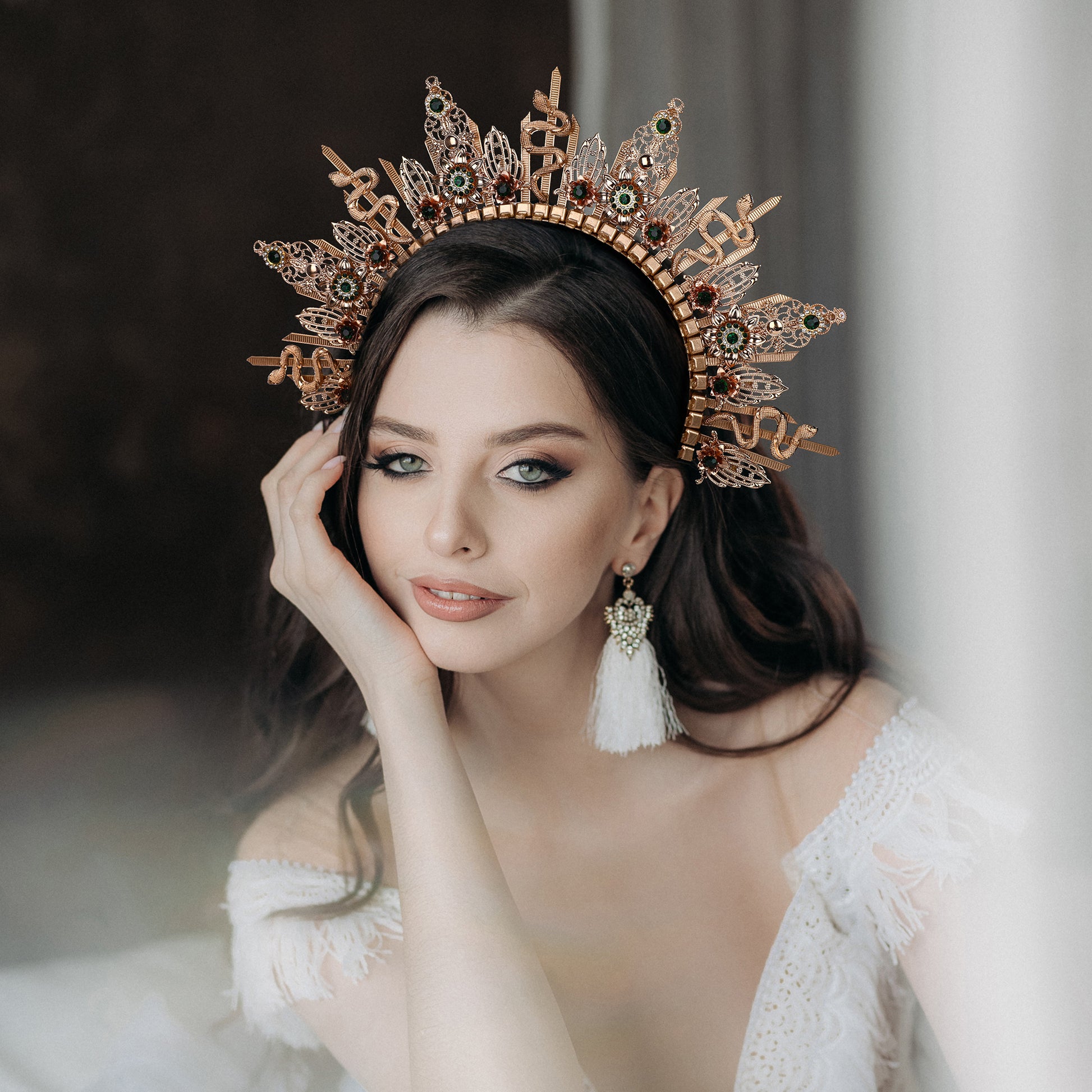 Gold Medusa Headband Snake Sunburst Halo Crown