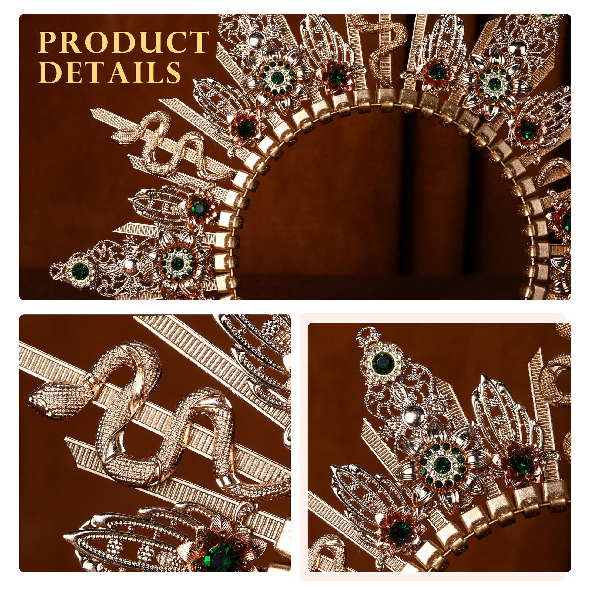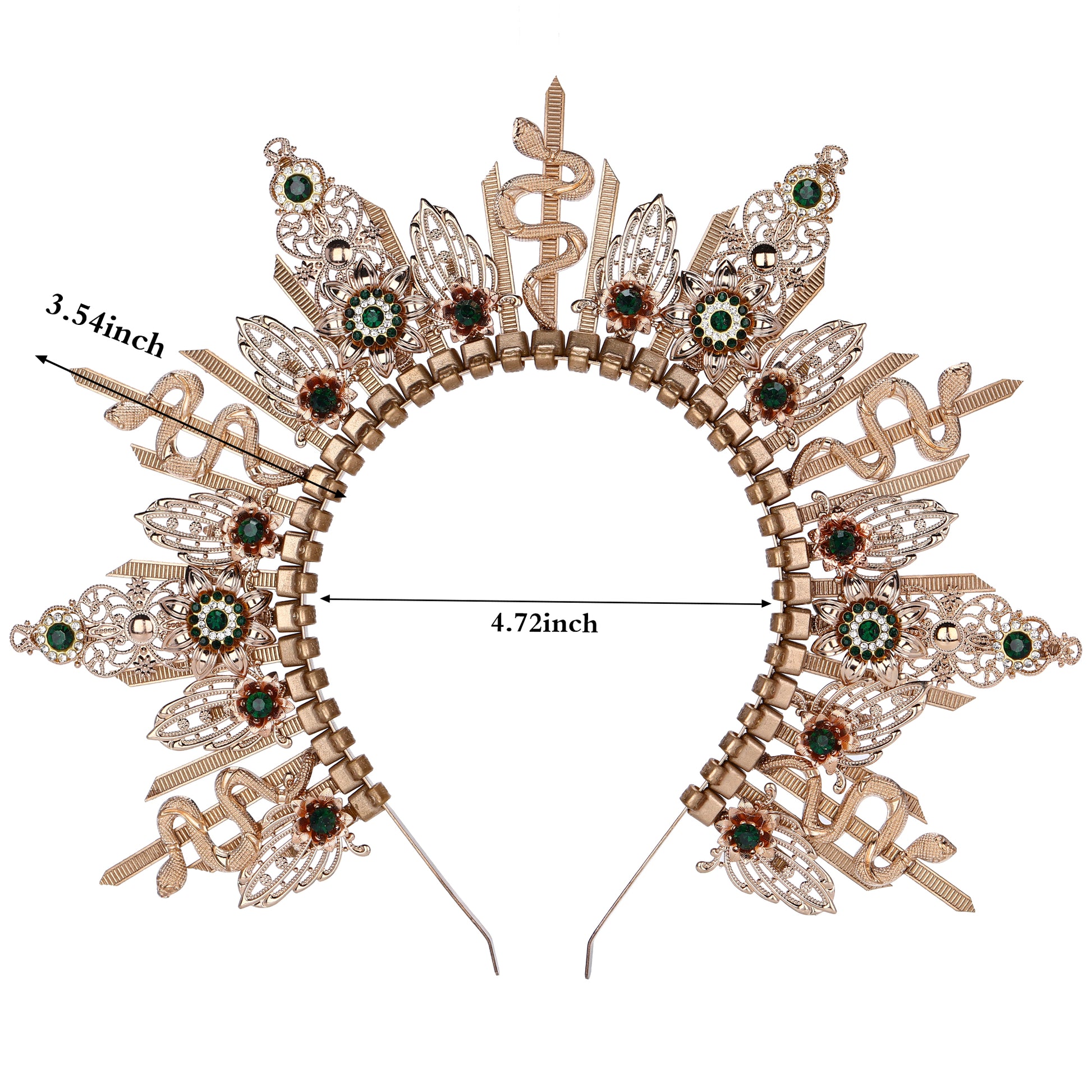 Product information: Elements: golden snake, diamond Material: metal Value applicable scenes: suitable for weddings, engagements, met gala, photo shooting, cosplay parties, beauty contests, street photography, exhibition halls, films, portraits, dances, performances, baby showers, Halloween and any other occasions you want to become more attractive. The unique and gorgeous headwear can bring you a new look. At the same time, it is also very suitable for women as gifts. It will also be a beautiful wedding dress accessory. It is a very good choice to wear some unique clothes on special days. Whether you're looking to channel your inner goddess or add a touch of glamour to your attire, this exquisite headdress is sure to turn heads and captivate all who see it. Reminder: The color may vary slightly depending on the light and screen. For manual measurement, please allow slight dimensional error.