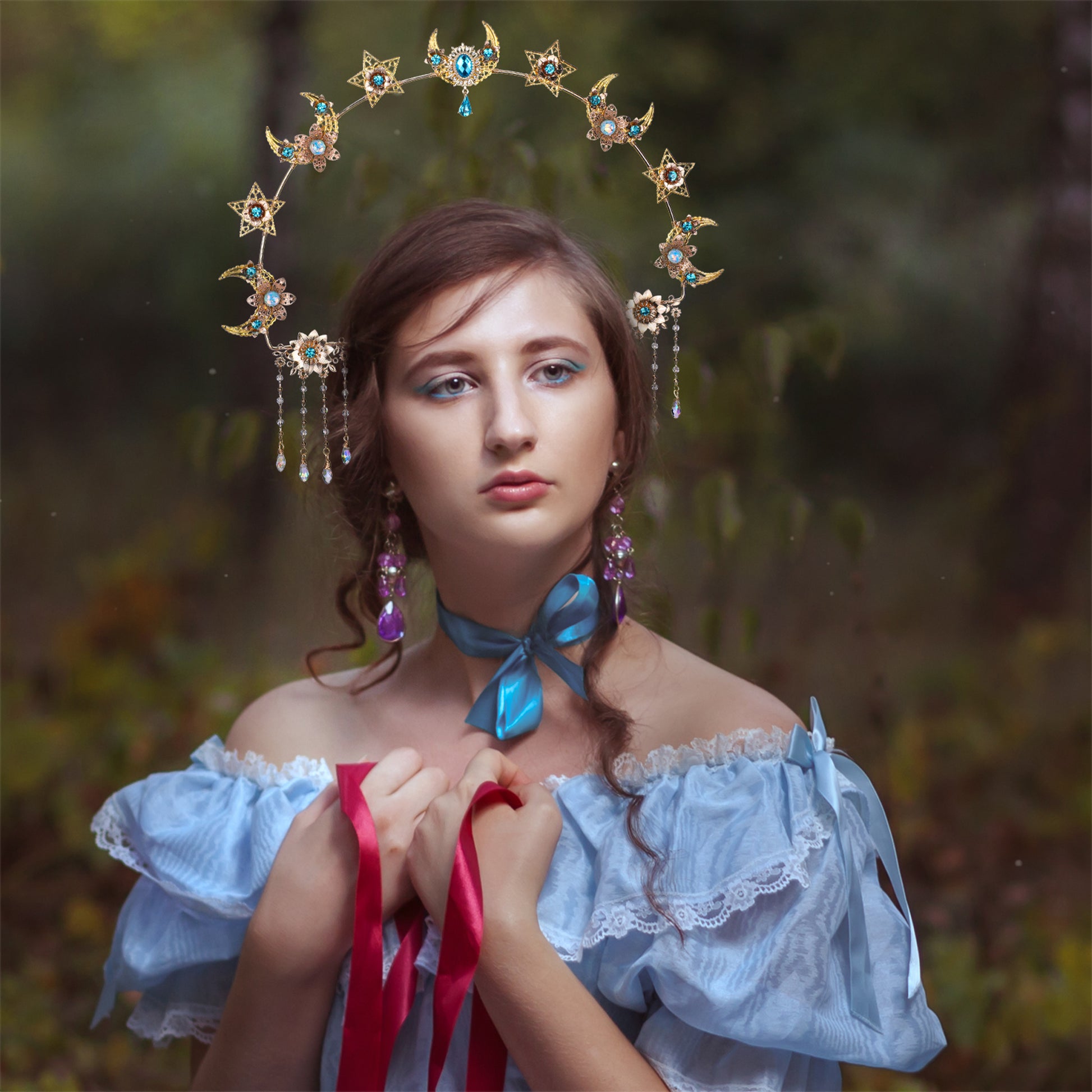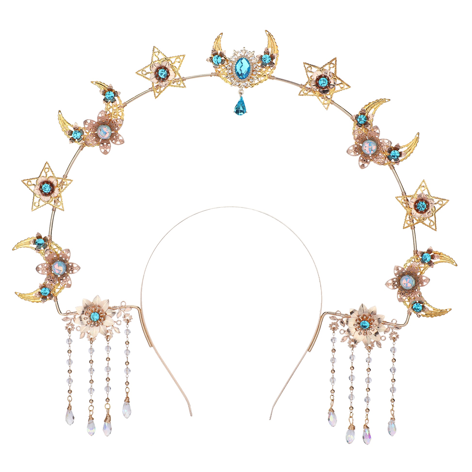 COSUCOS Stars Moon Halo Crown Handmade Headband