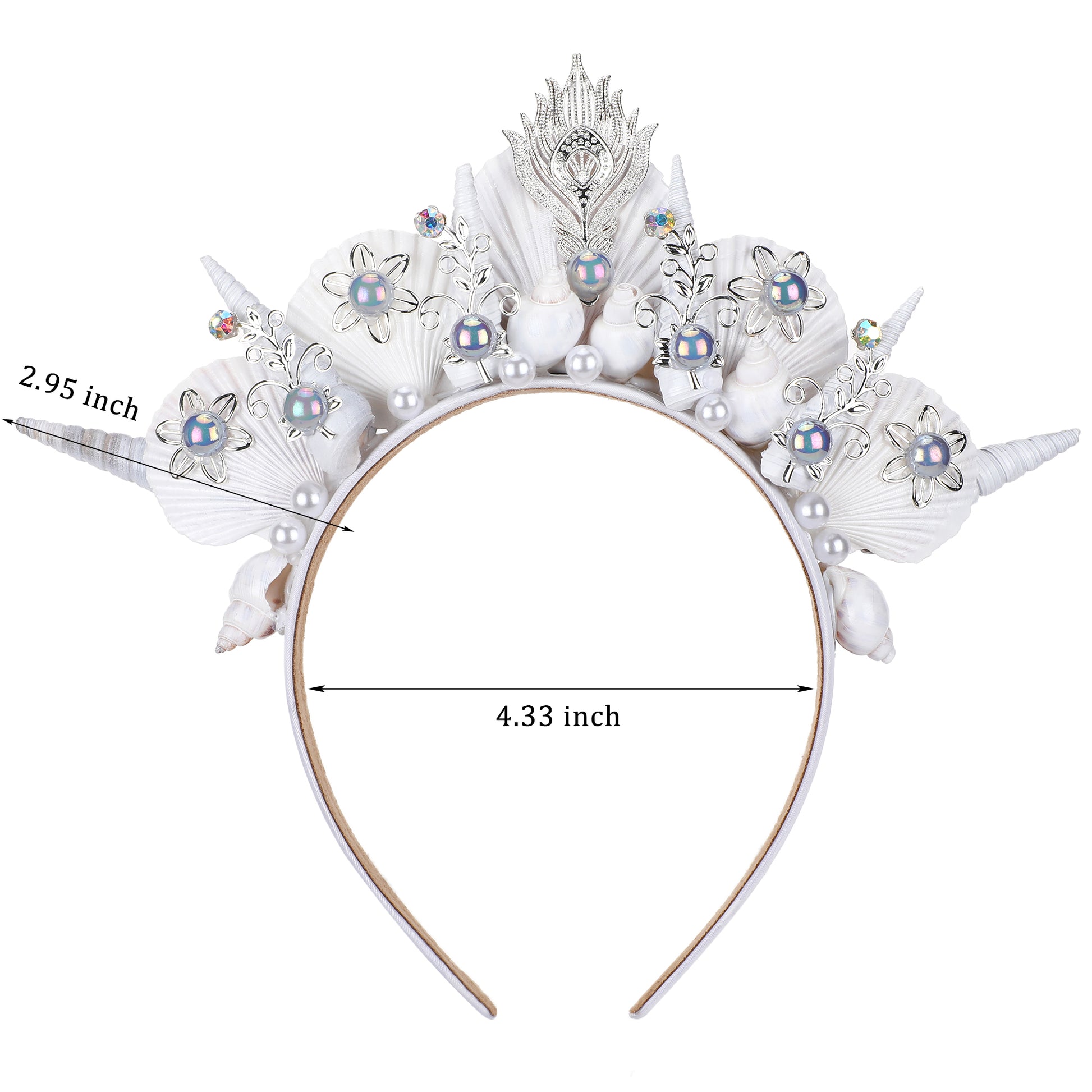- UNIQUE DESIGN: This Gold and white shells with colored rhinestones headdress is inspired by the beauty of the ocean. The carefully designed shell and bright pearls evoke the longing and yearning for the ocean. In addition, we spray-painted the surface of the shell,and used rhinestones to embellish it, making it look more gorgeous